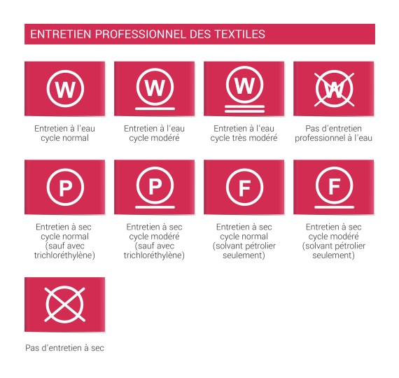 Symboles d'entretien pour le lavage.